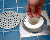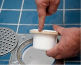 - Lyft upp vattenlåset som liknar en liten hink och avlägsna tvålrester och hår från in- och utsida.