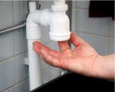 Den vita klumpen under handfatet är ett vattenlås som förhindrar att dålig lukt tränger upp från avloppsröret. Hårstrån, tvålrester och smuts fastnar lätt i vattenlåset och kan sätta sig som en propp, som hindrar vattnet att rinna ut.