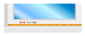 - På utåtgående fönster placeras tätningslisten på karmen, så att slangdelen nästan blir synlig inifrån. På gångjärnssidan bör den placeras mot karmsidan för att undvika att listen slits sönder samt för att man ska få rätt tryck på den.