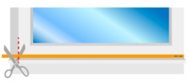 - Listen fästs i ena änden med två stift. Slangen skall ligga närmast inomhusluften så häftklammern sätts mellan slangen och vinkeln i karmen/bågen. Kapa listen något kortare än karmens/bågens mått.